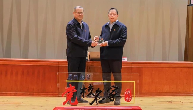 专题报告开始前,举行了厦门大学党校名家讲坛特邀嘉宾纪念牌颁发仪式,校党委常务副书记林东伟代表学校向孙宝厚颁发“厦门大学党校名家讲坛特邀嘉宾”纪念牌。