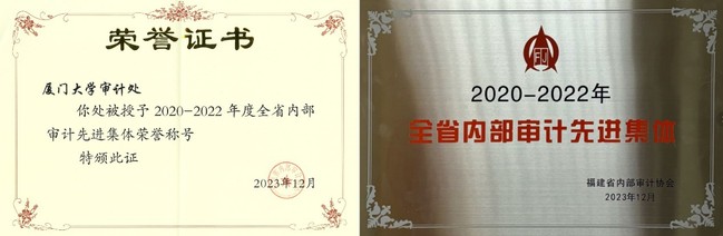 日前福建省内部审计协会发文颁布《福建省内部审计协会关于表彰2020至2022年全省内部审计先进集体及先进工作者的决定》(闽内协发〔2023〕24号),对2020年至2022年期间做出突出贡献的内部审计机构和个人进行表彰,厦门大学审计处取得2020至2022年“全省内部审计先进集体”荣誉称号。