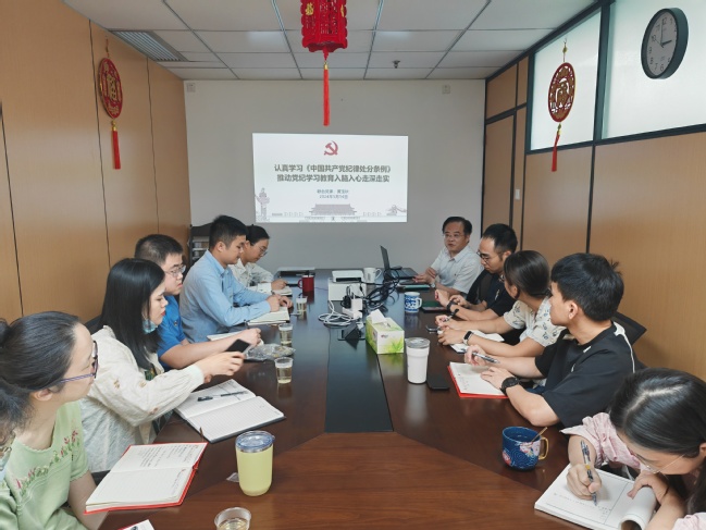黄宝秋重点围绕新修订的《中国共产党纪律处分条例》,结合为什么学、学什么、怎么学等问题,深入阐述《条例》修订的重大意义、主要特点和主要内容,对党支部和党员下一步深化党纪学习教育提出要求。他指出,开展党纪教育是加强党的纪律建设、强化党员纪律意识的重要举措,是纵深推进全面从严治党、营造良好政治生态的必然要求,每位党员都要在原原本本学、逐章逐条学上下功夫见成效,准确把握《条例》精神实质和最新要求,深入领会《条例》重点内容和着力方向,切实把自己摆进去、把职责摆进去、把工作摆进去,知敬畏、存戒惧、守底线,使铁的纪律转化为日常习惯和自觉遵循。