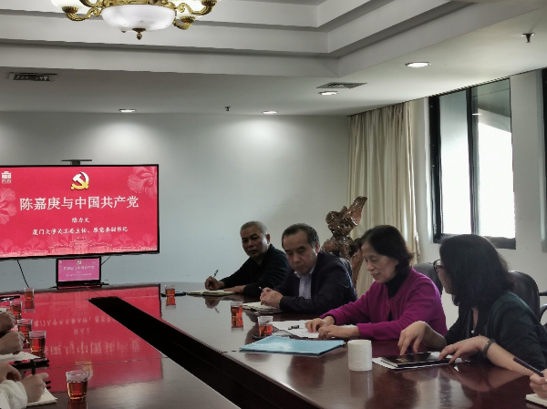 厦门大学关工委主任、原校党委副书记陈力文同志应邀作《陈嘉庚与中国共产党》专题报告。陈力文同志生动地讲述了陈嘉庚先生传奇的一生。她从辛亥革命、抗日战争、解放战争、新中国的建设等不同的历史阶段和重要历史节点出发,给支部党员讲述校主嘉庚先生与中国共产党人同心同行的感人故事,让支部党员更加理解了“华侨旗帜、民族光辉”的深层含义。陈力文同志在最后总结时谈到,中国共产党是中国人民的主心骨,正是因为有了中国共产党的正确领导,嘉庚先生倾心教育救国的追求方能成功。我们作为厦大人,要更加深入学习党史、校史,弘扬“嘉庚精神”, 坚守教育报国、立德树人的信念,更加自觉地把“个人梦”“厦大梦”融入中华民族伟大复兴的“中国梦”。