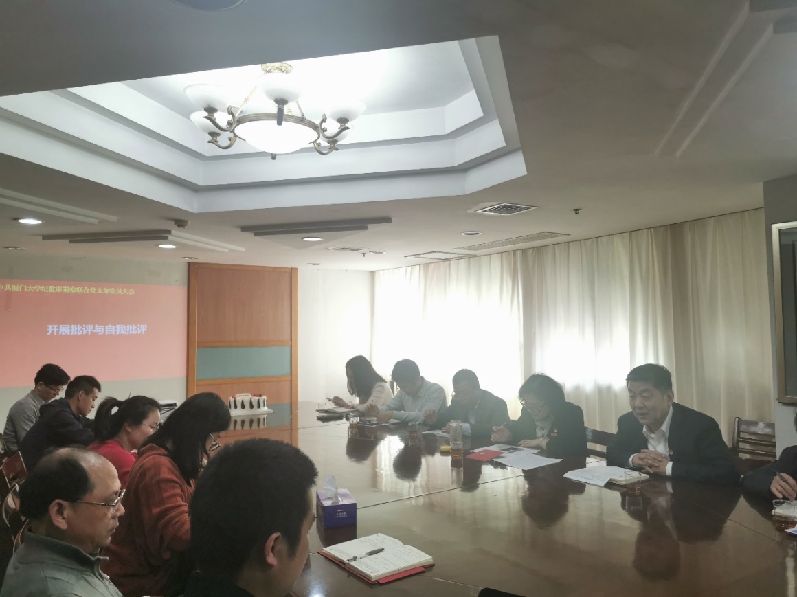 根据机关党委《关于召开2020年度机关党支部组织生活会和开展民主评议党员的通知》要求,3月15日下午,纪监审巡察联合党支部在颂恩楼1609会议室召开2020年度组织生活会。校党委副书记、纪委书记全海以普通党员身份参加会议。会议由党支部书记、纪委副书记、监察处处长陈雪玲同志主持。